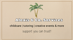 At Alexis & Co. Services, I take pride in offering a range of personalized services including enriching childcare sessions, cheerleading/tumbling instruction, private tutoring, handmade goods and creative events. My commitment is to provide the highest standard of care and support to all our clients and their children.